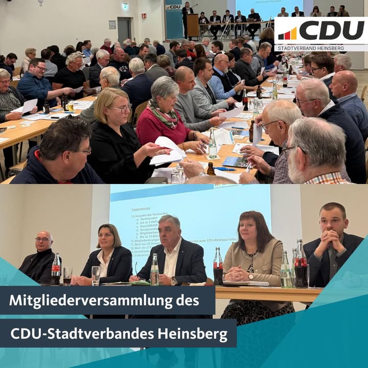 mehrMitgliederversammlung mit Neuwahlen des Vorstandes der CDU-STV Heinsberg!Wir haben uns sehr gefreut, am Donnerstag, den 20.11.2025, mehr als 100 Mitglieder sowie mehrere Freundinnen und Freunde der CDU Heinsberg im Bürgerhaus in Aphoven begrüßen zu dürfen! 🤝🍀Neben der turnusmäßigen Neuwahl stellten die Berichte aus Düsseldorf und Berlin ein weiteres Highlight des Abends dar: Unser Landtagsabgeordneter Bernd Krückel sowie Bundestagsabgeordneter Wilfried Oellers berichteten aus erster Hand über aktuelle Entwicklungen auf Landes- und Bundesebene 🗣️💬🌍Im Zuge der stattgefundenen Neuwahl wurde Thomas Back als Vorsitzender des CDU-STV Heinsberg wiedergewählt. Unterstützt wird er künftig von den beiden stellvertretenden Vorsitzenden Elena Dohmen und Bastian Baltes. Daneben komplettieren Joey Kuck (Schriftführer), Michael Houben (Schatzmeister) und Thomas Franken (Mitgliederbeauftragter) den geschäftsführenden Vorstand. Darüber hinaus wird der Vorstand durch 13 weitere Beisitzerinnen und Beisitzer verstärkt.Herzlichen Glückwunsch an alle Gewählten! 👏🚀